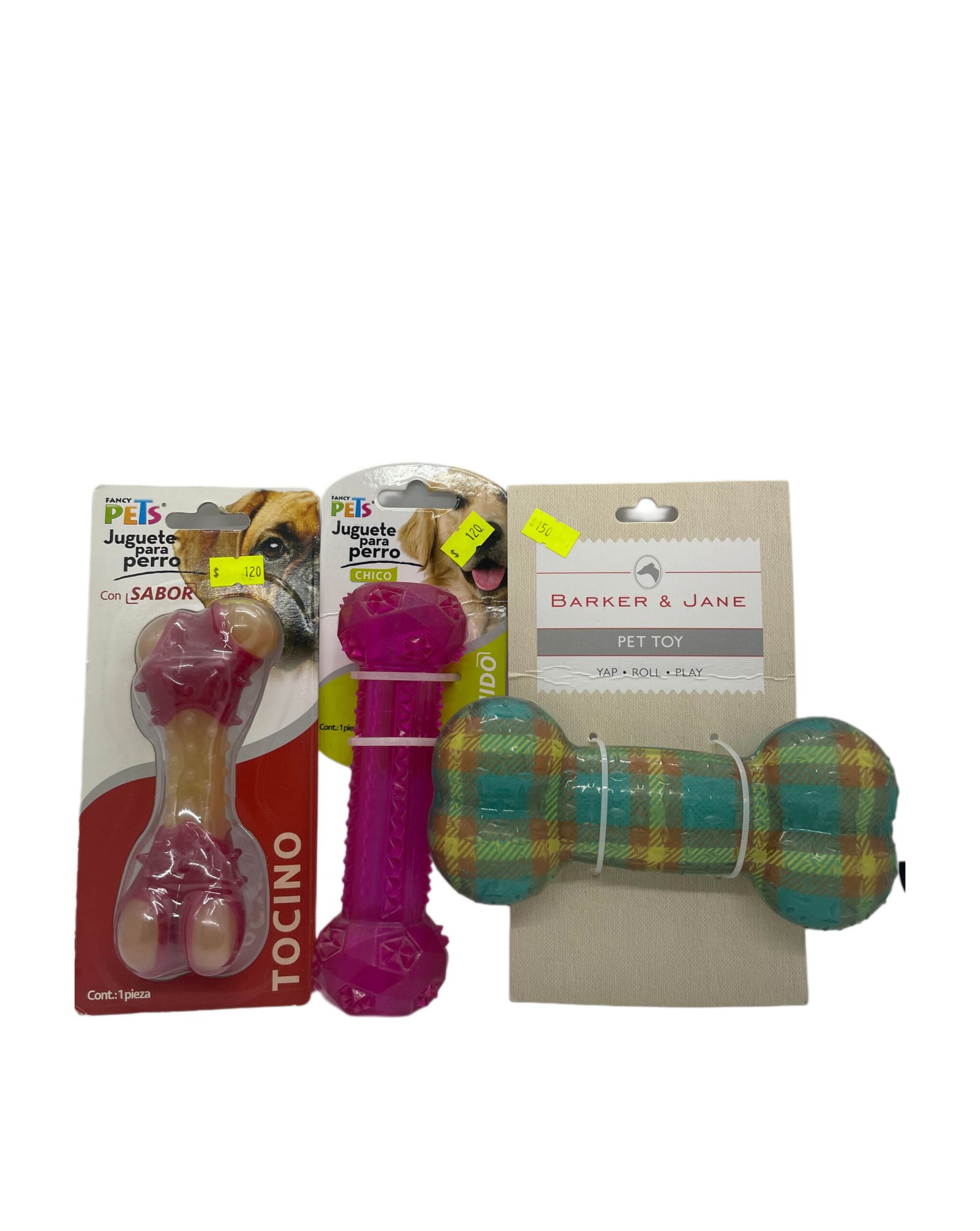 Huesos de juguete duraderos, diseñados para el entretenimiento de tu mascota. Perfectos para juegos activos y ayudar a fortalecer sus dientes y encías.