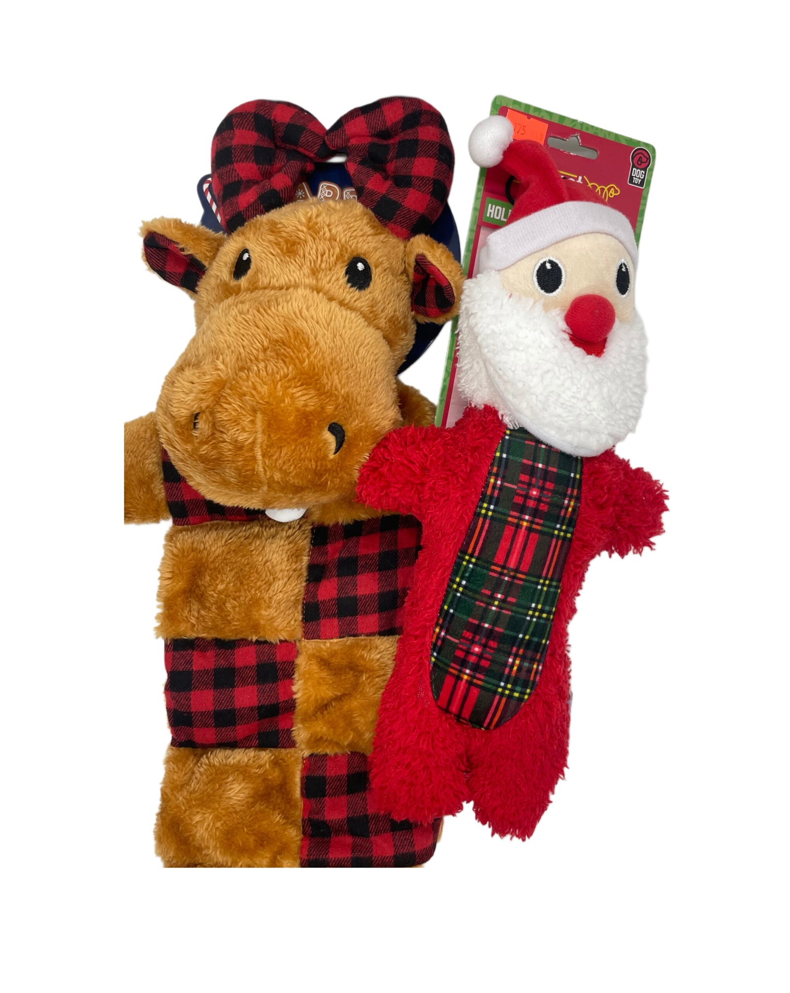 Peluches navideños adorables y suaves, perfectos para que tu mascota disfrute de la temporada. Diseñados con detalles festivos y materiales seguros para acompañar sus juegos y momentos de descanso.