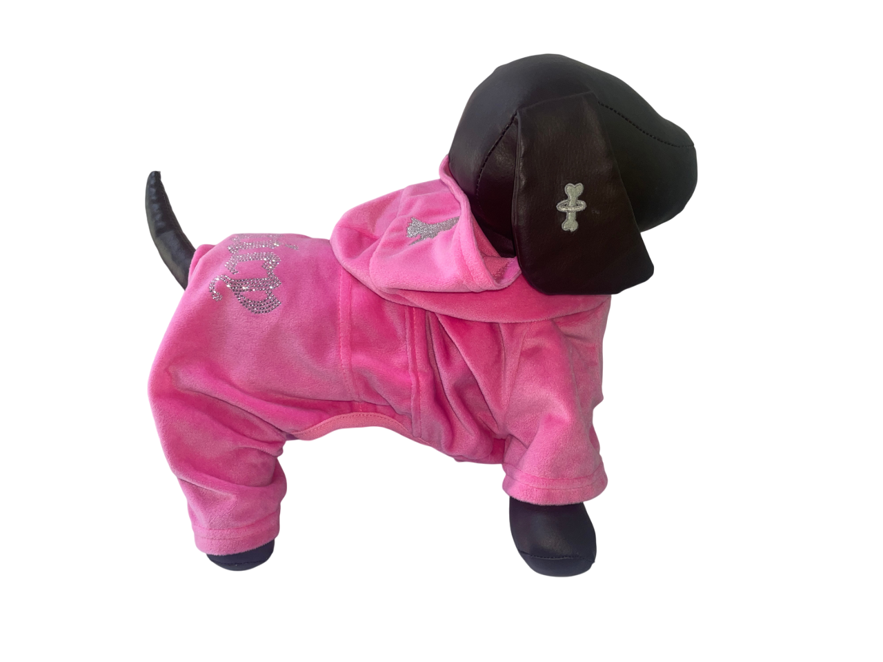 Suéter rosa de terciopelo, con detalles brillantes y diseño de cuerpo completo, ideal para mantener a tu mascota cómoda y con estilo.